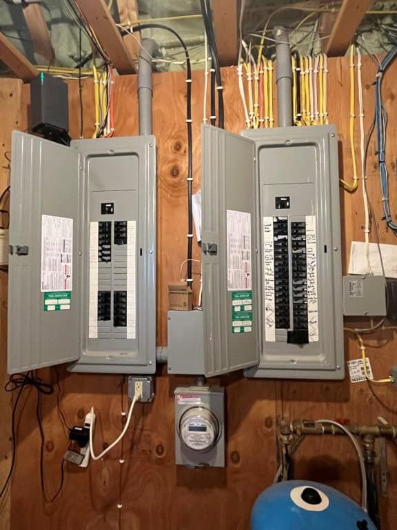 Upstairs, you'll find a bright, open-concept kitchen, dining, and living area with rich hickory cabinetry, trim, and doors that add warmth and charm. This level includes three bedrooms and 2.5 bathrooms, along with laundry, mudroom and an oversized pantry/office space. A cozy electric fireplace adds ambiance to the main living space.